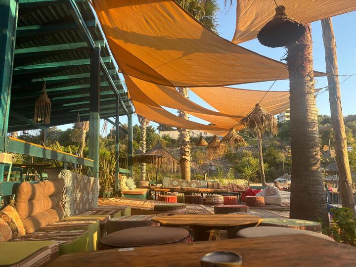 The camping is located 30mt from the sea and there are a bunch of cute quiet bars around there. The feel is very relaxing but fun at the same time. The tent in the camping was extremely comfortable.