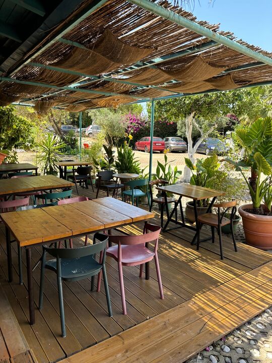 A selection of options including fruits, juice and cheese is served for the continental breakfast. At the campground, the family-friendly restaurant is open for dinner and specialises in Greek cuisine.